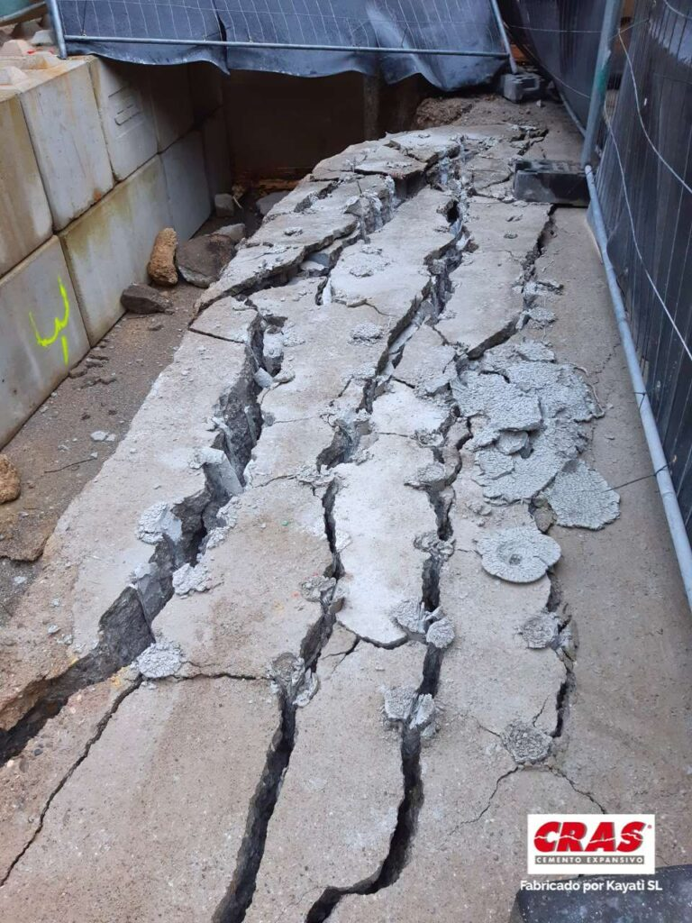 En este proyecto, la carga y la evolución de la fractura se desarrollaron a lo largo de varios días. La aparición progresiva de grietas permitió planificar el desescombro sin urgencias, manteniendo en todo momento la estabilidad del entorno.