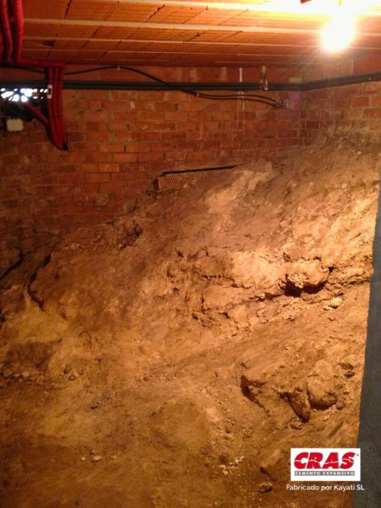 La presencia de piedra en este tipo de zonas puede bloquear el avance normal de la obra y convertir una fase de excavación en una actuación mucho más delicada. Por eso, en este caso se optó por una solución de demolición controlada con CRAS, capaz de actuar de forma progresiva y segura incluso en un entorno tan sensible como el interior de una vivienda.